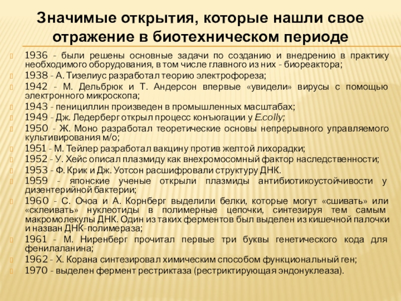 1950 - Ж. Моно разработал теоретические основы непрерывного управляемого культивирования м/о;
