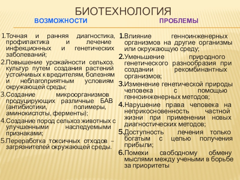 продуктов их жизнедеятельности для решения технологических задач, а также возможности создания живых организмов с необходимыми свойствами методом генной инженерии.