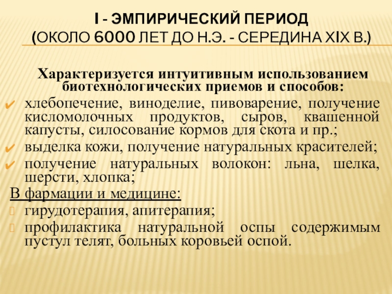 Слайд 6I - Эмпирический период