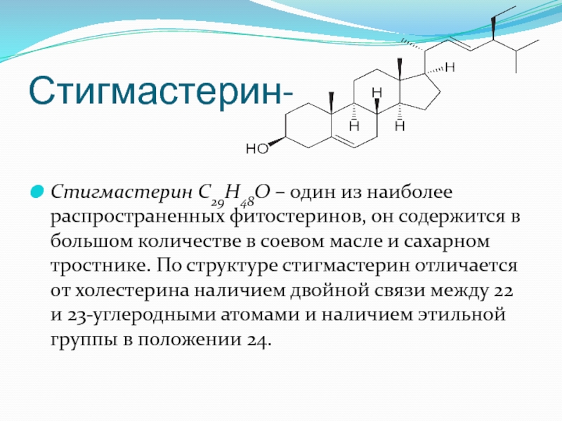 Стигмастерин С29H48О – один из наиболее распространенных фитостеринов, он содержится