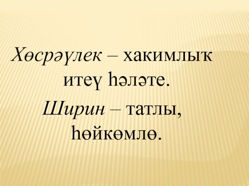 Хөсрәүлек – хакимлыҡ итеү һәләте.Ширин – татлы, һөйкөмлө.