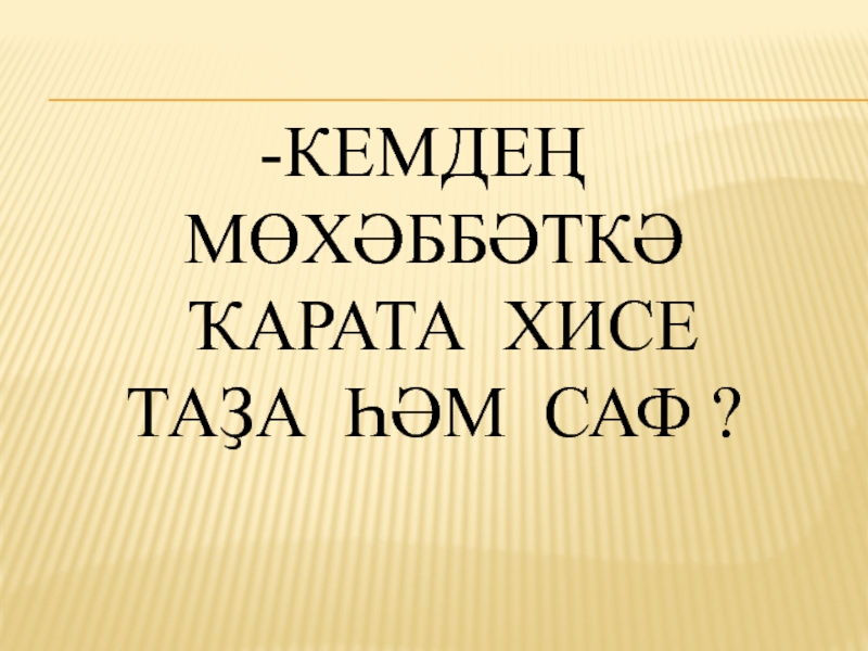 Слайд 33Кемдең мөхәббәткә ҡарата хисе таҙа һәм саф ?