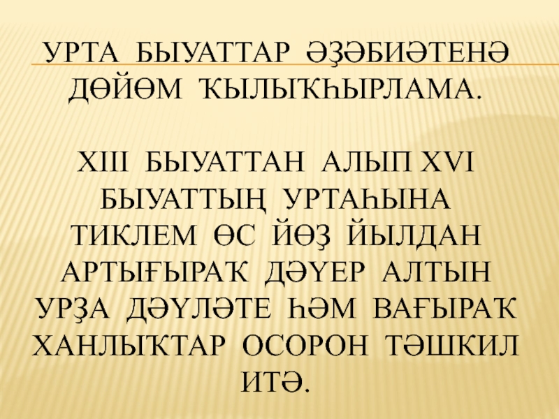 Слайд 17 Урта быуаттар әҙәбиәтенә дөйөм ҡылыҡһырлама. XIII быуаттан алып XVI быуаттың уртаһына