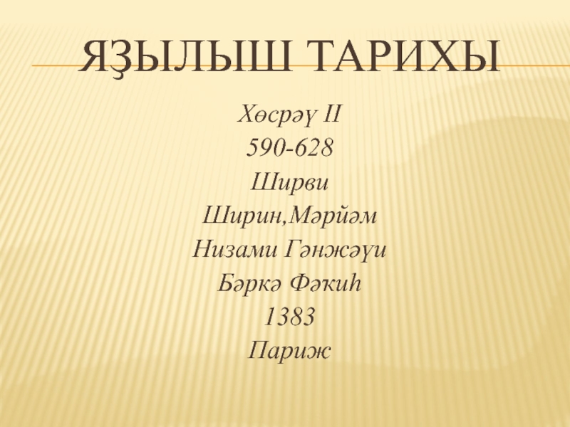 Яҙылыш тарихыХөсрәү II590-628ШирвиШирин,МәрйәмНизами ГәнжәүиБәркә Фәҡиһ1383Париж