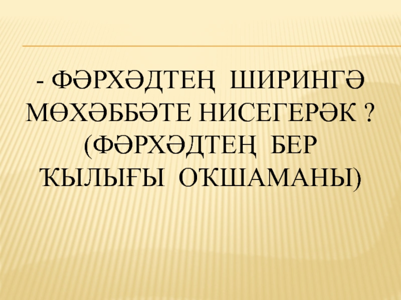 Слайд 32 - Фәрхәдтең Ширингә мөхәббәте нисегерәк ? (Фәрхәдтең бер ҡылығы оҡшаманы)