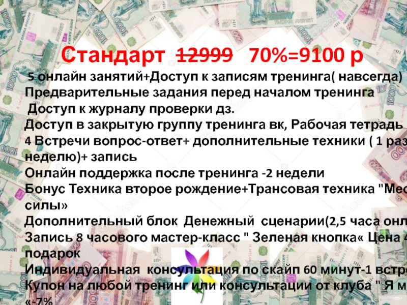 Дополнительный блок Денежный сценарии(2,5 часа онлайн)