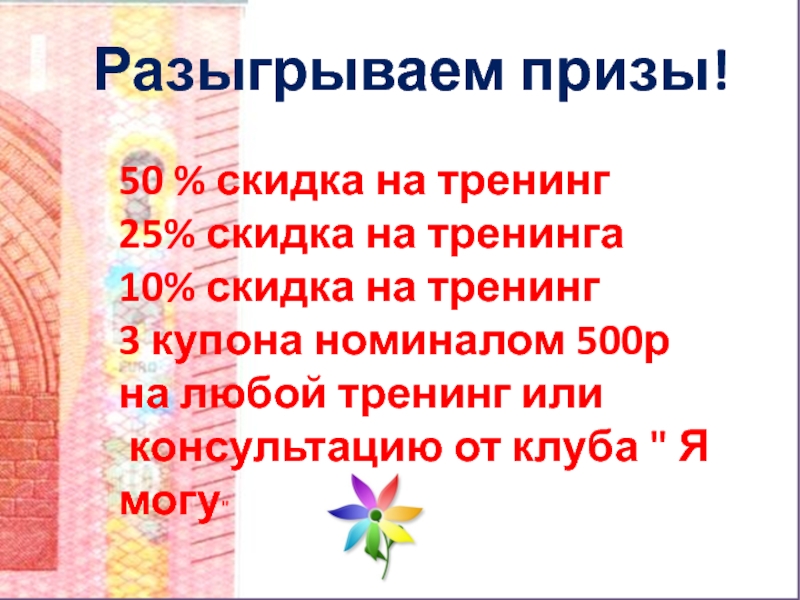Купон на любой тренинг или консультации от клуба " Я могу«-7%