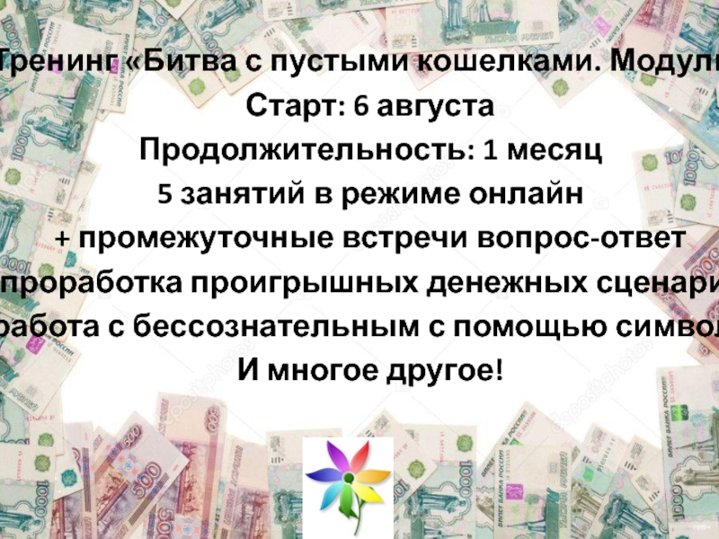 Слайд 46Тренинг «Битва с пустыми кошелками. Модуль»