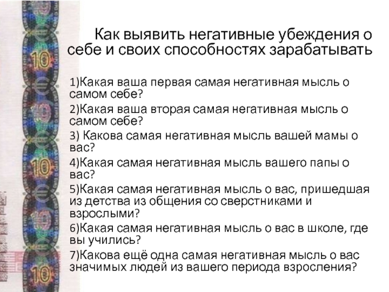 значимых лиц. Трансформация из бедности к богатству. Техника 101 утверждение. Мотивационная установка. Работа с негативными убеждениями и самоопределениями