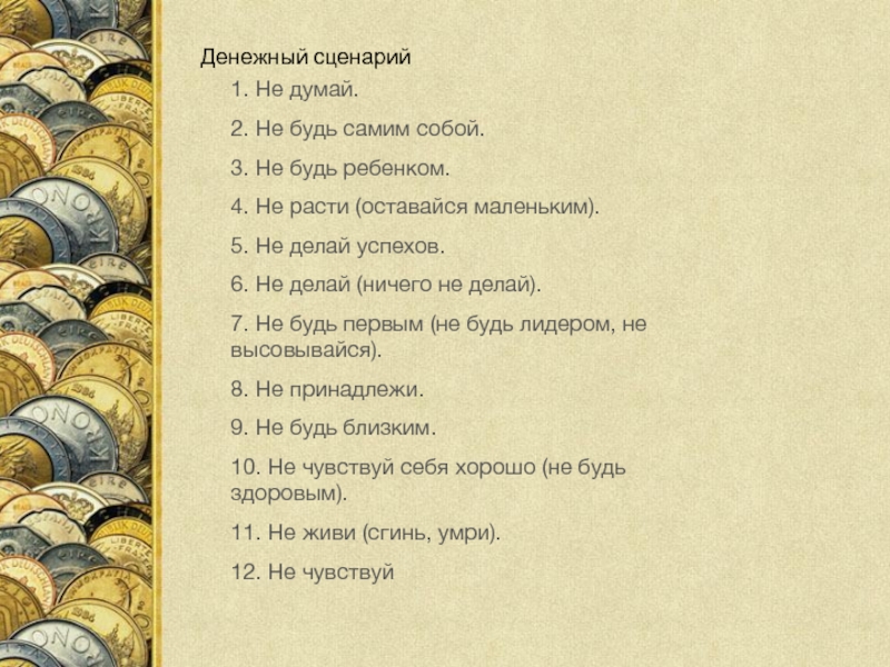 Слайд 48Денежный сценарий
