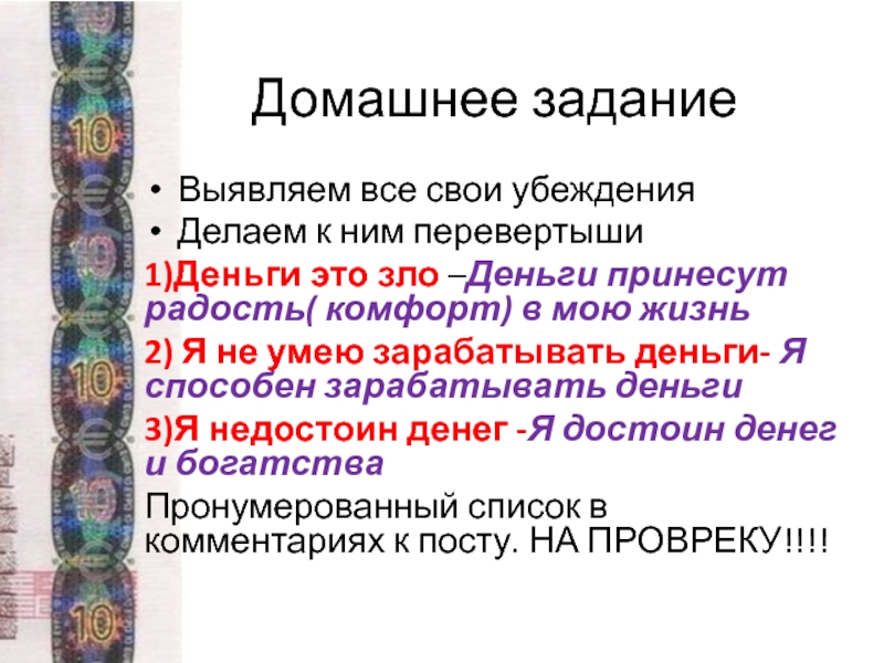 ДЗ Выявление и изменение денежных убеждений и самоопределений