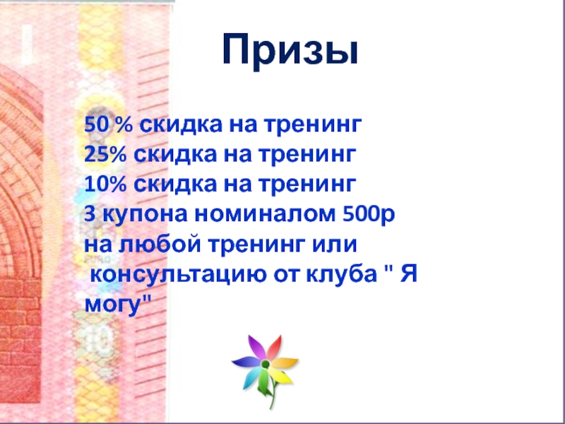 Купон на любой тренинг или консультации от клуба " Я могу«-10%