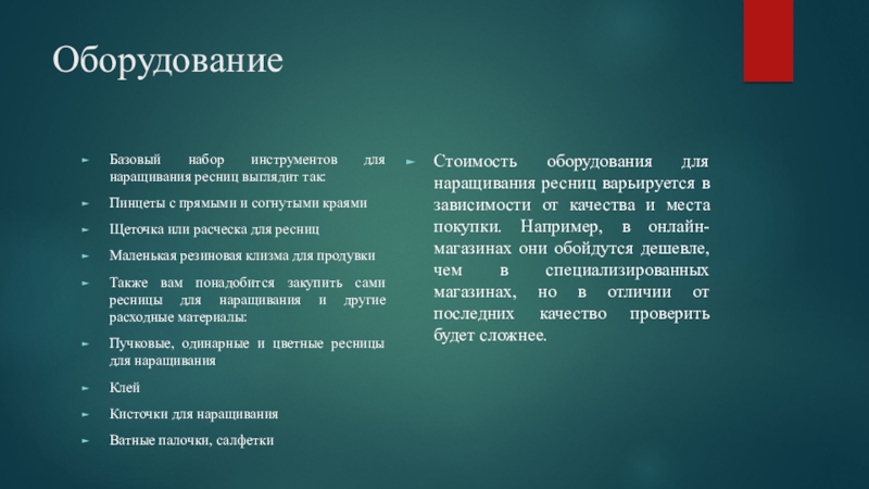 Стоимость оборудования для наращивания ресниц варьируется в зависимости от качества и места покупки. Например, в онлайн-магазинах они обойдутся дешевле, чем в специализированных магазинах, но в отличии от последних качество проверить будет сложнее.