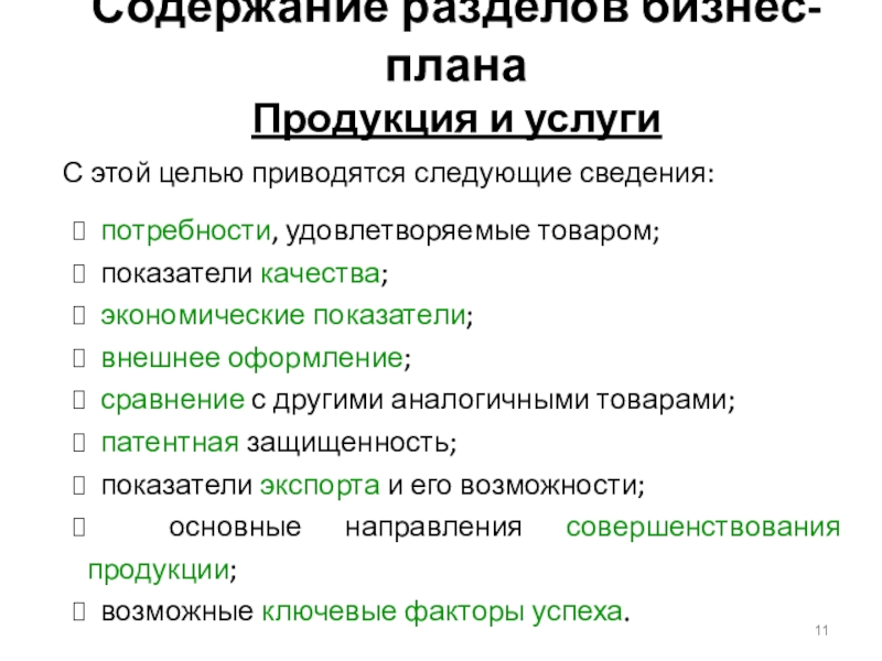 описание продукции (услуг) предприятия, производится их комплексная оценка.