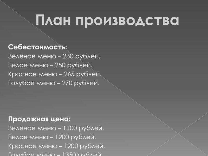 меняет взгляды на жизнь. Чувственный эксперимент, который пробуждает ощущения и позволяет полностью переоценить восприятие вкусов и запахов. В нашем ресторане клиенту предоставляется 4 «меню сюрприза»:Голубое: для ценителей даров моря.