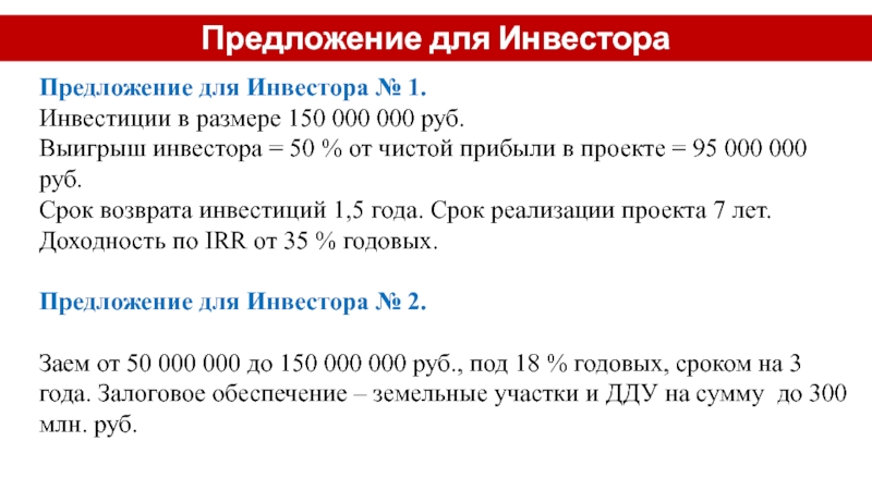 1. ПРЕДЛОЖЕНИЕ(Я) ДЛЯ ИНВЕСТОРОВ!