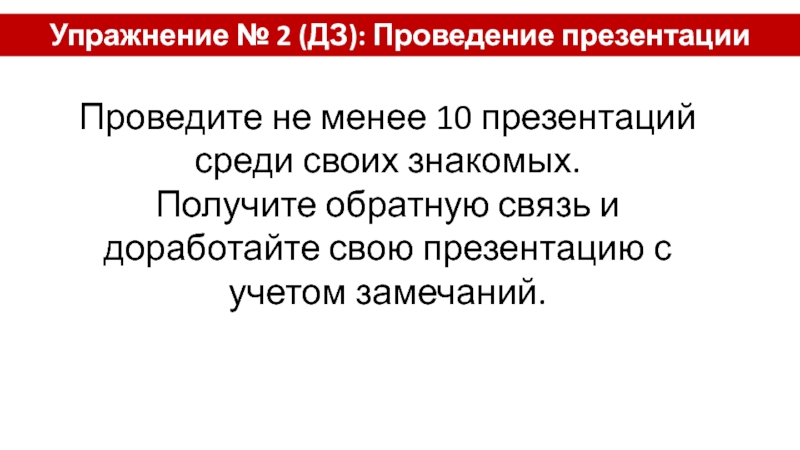 среди своих знакомых. Получите обратную связь и доработайте свою презентацию с учетом замечаний.