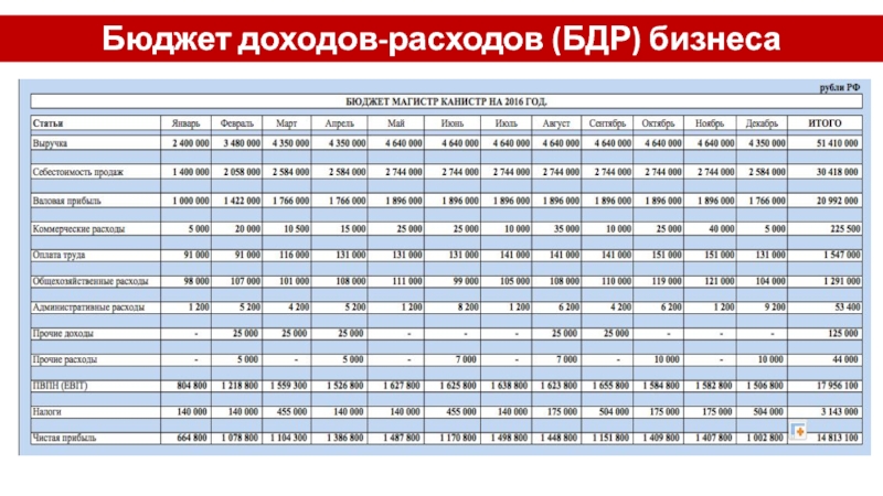 9. БДР и БДДС проекта. (Бюджет доходов и расходов и Бюджет движения денежных средств).