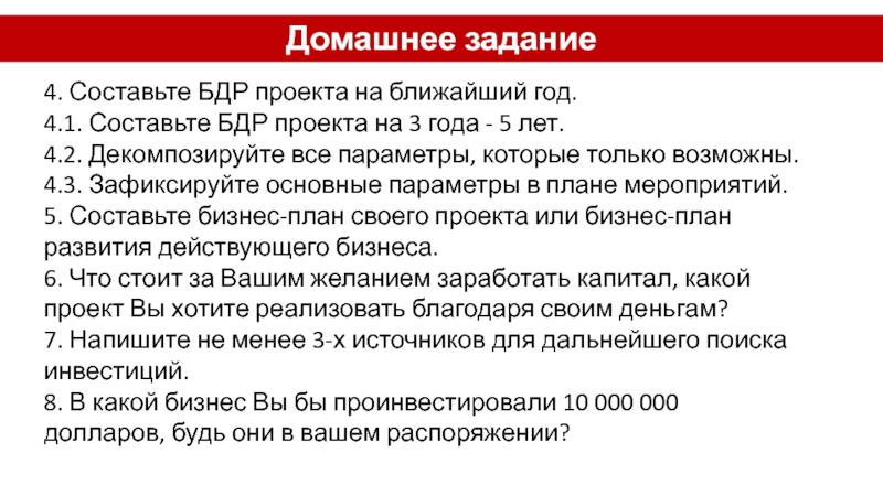 Слайд 99Упражнение № 7 (ДЗ): Поиск инвестиций
