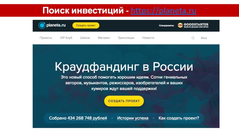 Слайд 95Поиск инвестиций - https://planeta.ru