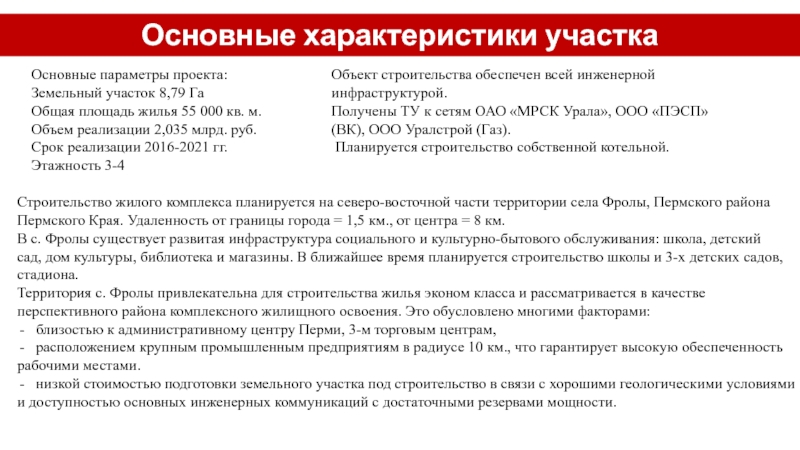 Реализация жилого комплекса в с. Фролы, Пермского Края, 55 000 кв. м.