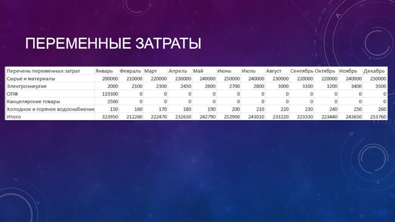 Слайд 20Переменные затраты
