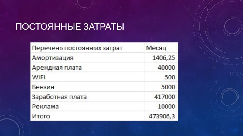 Слайд 19Постоянные затраты