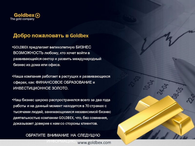 Наш бизнес широко распространился всего за два года работы и на данный момент находится в 70 странах с тысячами людей, занимающимися независимой бизнес деятельностью компании GOLDBEX, что, без сомнения, доказывает доверие к нам со стороны клиентов.