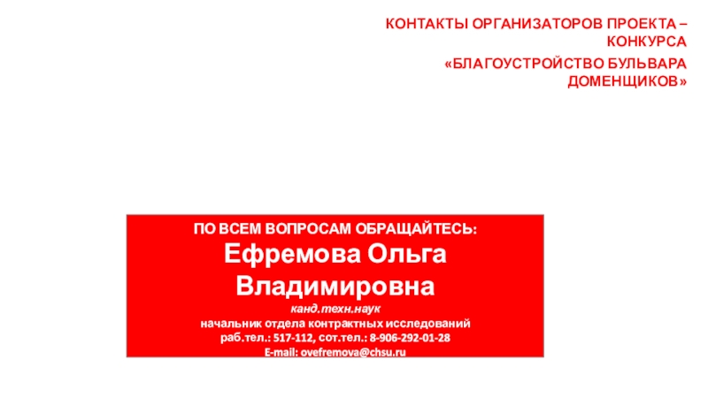 Если не удалось найти и скачать доклад-презентацию, Вы можете заказать его на нашем сайте. Мы постараемся найти нужный Вам материал и отправим по электронной почте. Не стесняйтесь обращаться к нам, если у вас возникли вопросы или пожелания:
