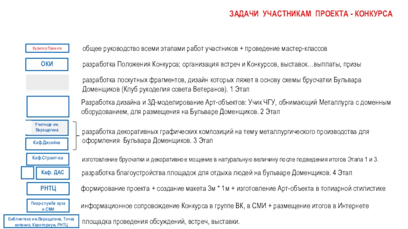 разработка Положения Конкурса; организация встреч и Конкурсов, выставок…выплаты, призы