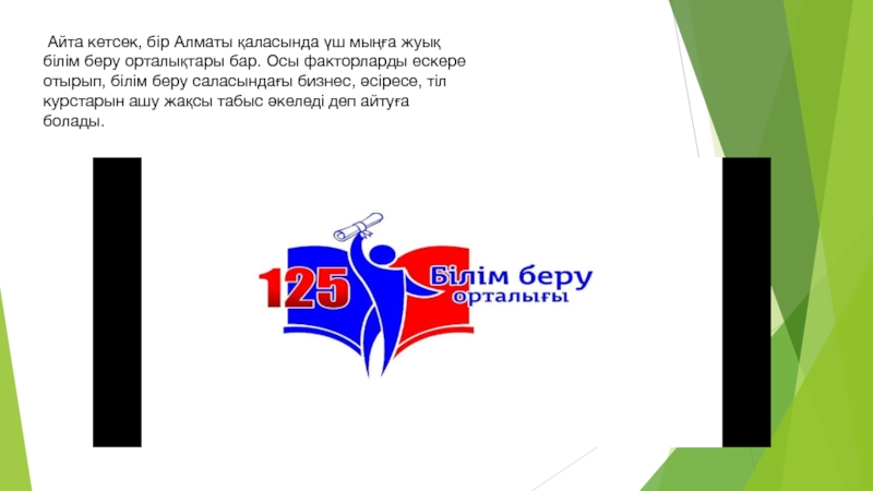Слайд 3 Айта кетсек, бір Алматы қаласында үш мыңға жуық білім беру орталықтары