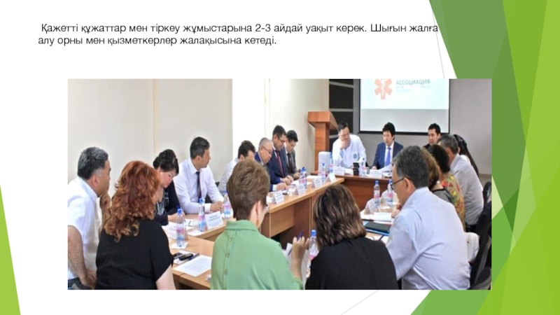 Слайд 5 Қажетті құжаттар мен тіркеу жұмыстарына 2-3 айдай уақыт керек. Шығын