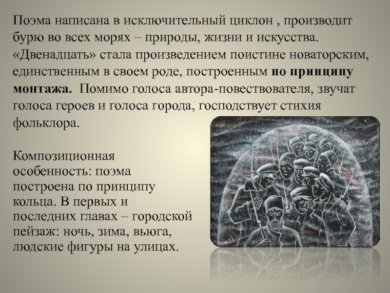 Слайд 19Поэма написана в исключительный циклон , производит бурю во всех