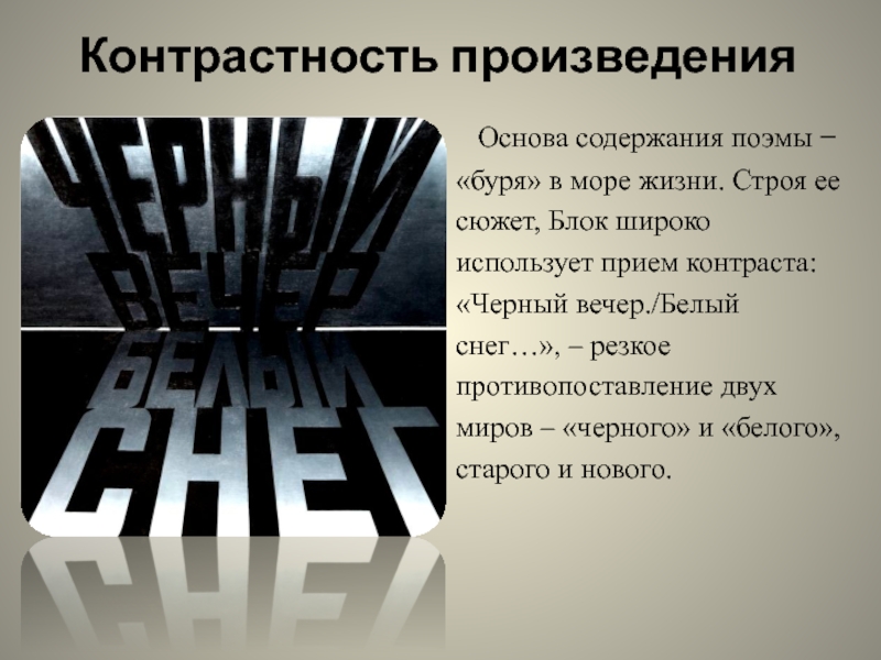 обе они построены на контрастах. Поэма начинается антитезой – «Черный