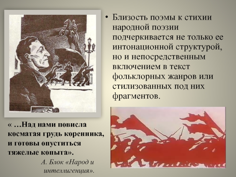 Слайд 15Близость поэмы к стихии народной поэзии подчеркивается не только ее