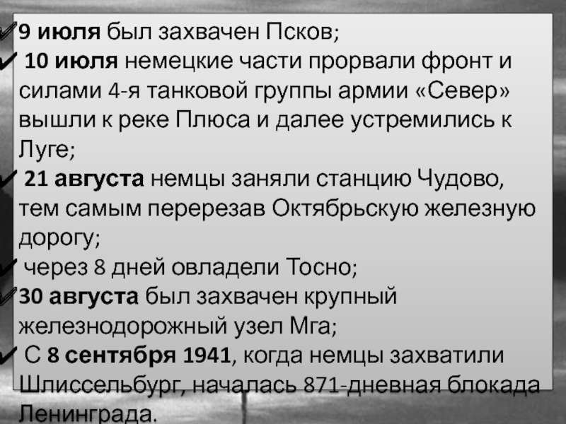 С 8 сентября 1941, когда немцы захватили Шлиссельбург, началась 871-дневная блокада Ленинграда.