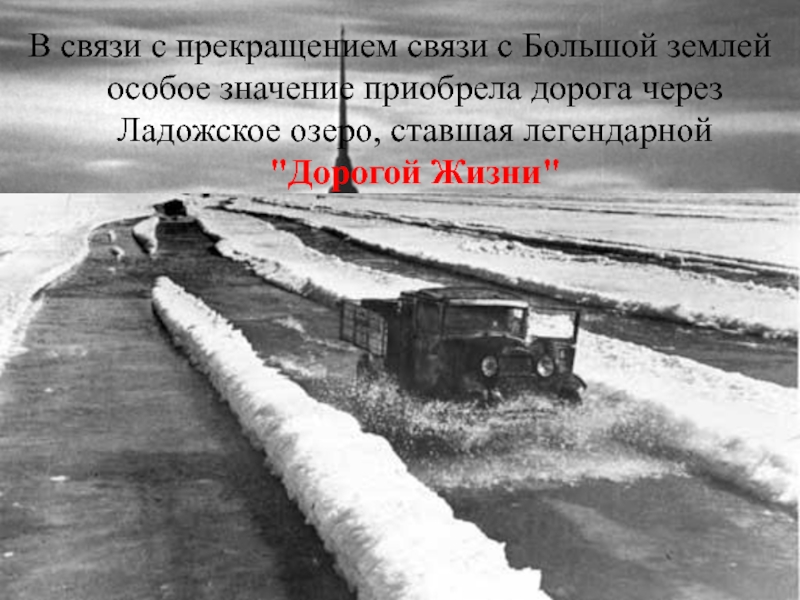 приобрела дорога через Ладожское озеро, ставшая легендарной "Дорогой Жизни"