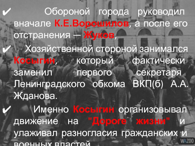 Слайд 12 Обороной города руководил вначале К.Е.Ворошилов, а после его