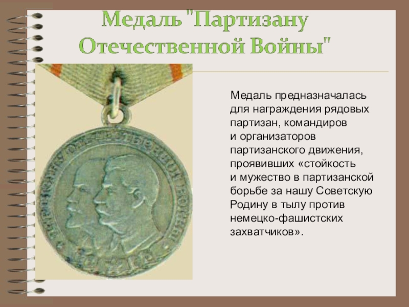 Медаль предназначалась для награждения рядовых партизан, командиров и организаторов