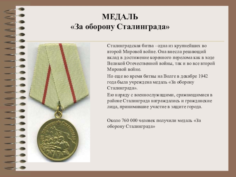 Слайд 27Медаль «За доблестный труд в ВОВ 1941-1945гг.»