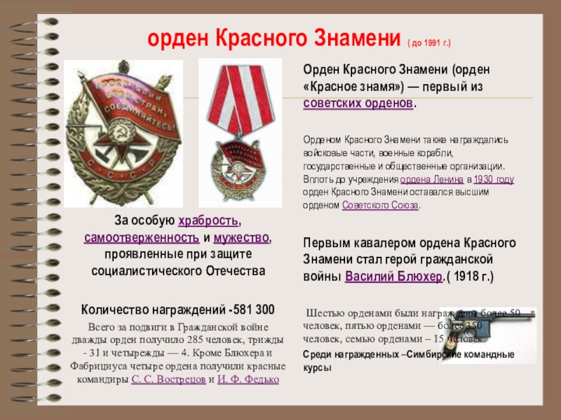 Слайд 5орден Красного Знамени ( до 1991 г.)