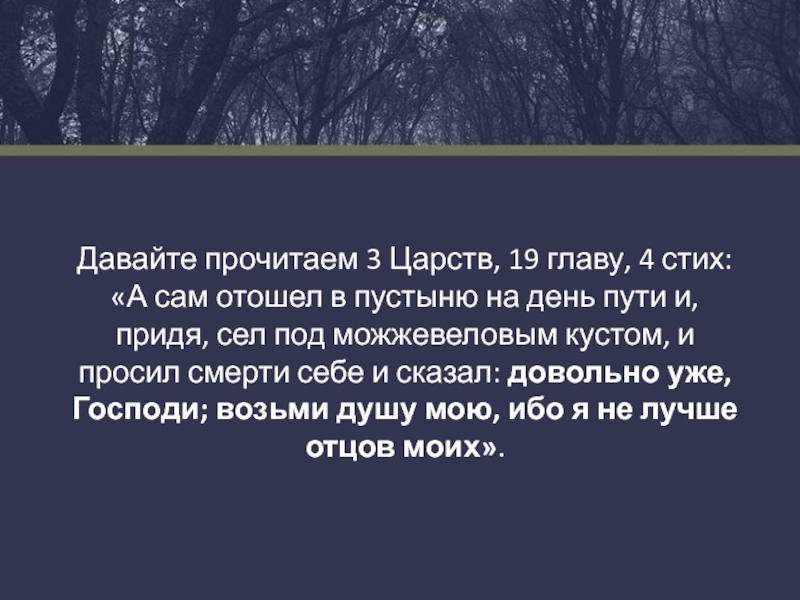 Слайд 6Давайте прочитаем 3 Царств, 19 главу, 4 стих:
