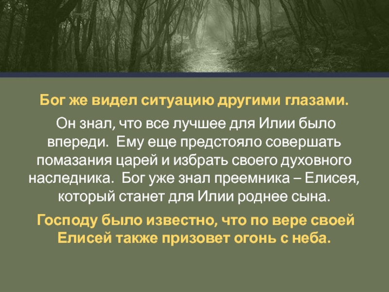 Господу было известно, что по вере своей Елисей также призовет огонь с неба.