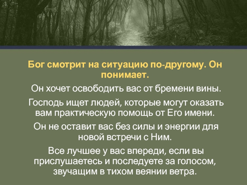 Слайд 23Бог смотрит на ситуацию по-другому. Он понимает.