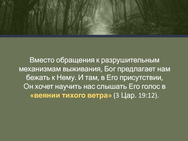 Слайд 14Вместо обращения к разрушительным механизмам выживания, Бог предлагает нам бежать