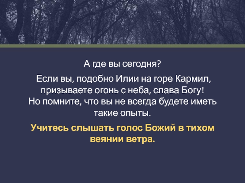 Учитесь слышать голос Божий в тихом веянии ветра.