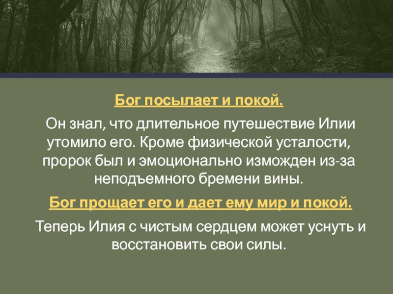 Теперь Илия с чистым сердцем может уснуть и восстановить свои силы.
