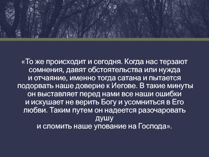 Слайд 17«Именно тогда, когда человек чувствует себя очень слабым, сатана посылает