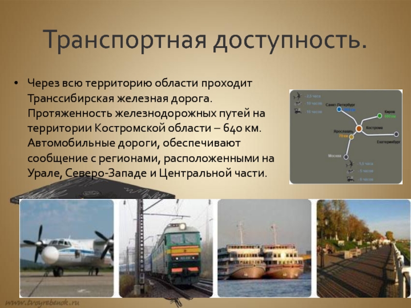 железнодорожных путей на территории Костромской области – 640 км. Автомобильные