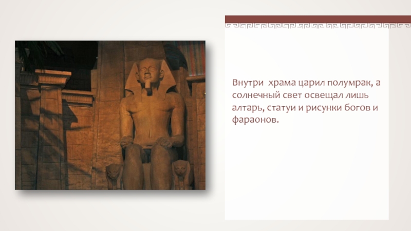 Слайд 11Внутри храма царил полумрак, а солнечный свет освещал лишь алтарь,